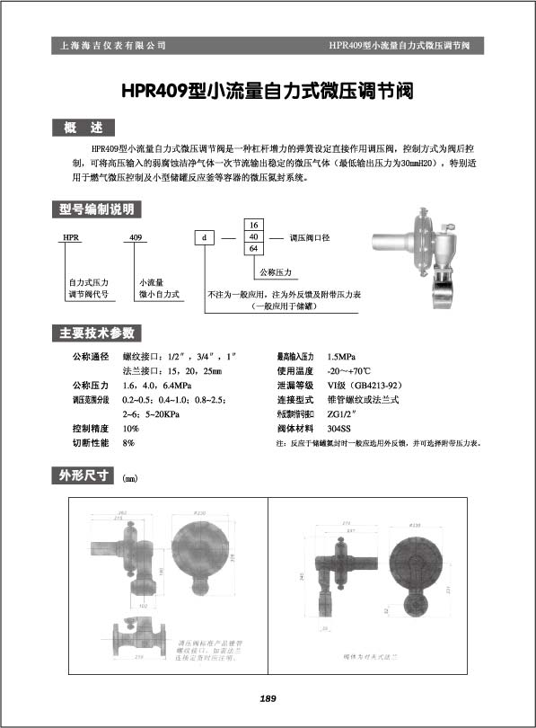 HPR409 型小流量自力式微压调节阀